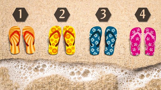 Оказывается, даже пляжные шлепанцы, которые мы покупаем для отпуска, могут многое рассказать о нашей личности. Сборы в отпуск начинаются с мелочей - и именно в них проявляется характер. Выбор пляжных шлепанцев кажется пустяком, но психологи уверены: даже такая деталь способна точно описать вашу личность. Этот психологический тест предлагает четыре пары вьетнамок - какие из них ваши? На этой фотографии вы видите четыре разных типа вьетнамок. Какие из них вы бы выбрали для прогулок по пляжу? Этот выбор говорит о том, что вы - очень веселый человек...