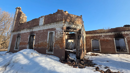 От неё мало чего осталось. Обугленные стены первого этажа. Обрушенные перекрытия.