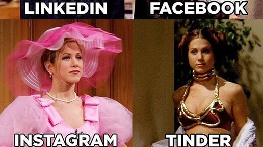 В последнее время все звезды вокруг постят фотографии, где показывают, как бы их аватарка выглядела в разных соцсетях. Мем призван высмеивать стереотипы о том, как пользователь выглядит в каждой из социальных сетей. Поклонники сериала "Друзья" также сделали данный мем со всеми главными актерами этой комедии. Давайте же посмотрим на фото: 1) Рэйчел Грин: 2) Моника Геллер: 3) Фиби Буффе: 4) Чендлер Бинг: 5) Джоуи Триббиани: 6) Росс Геллер: Какой из мемов Вам понравился...