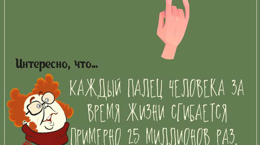 Каждый палец человека за время жизни сгибается примерно 25 миллионов раз. Источник