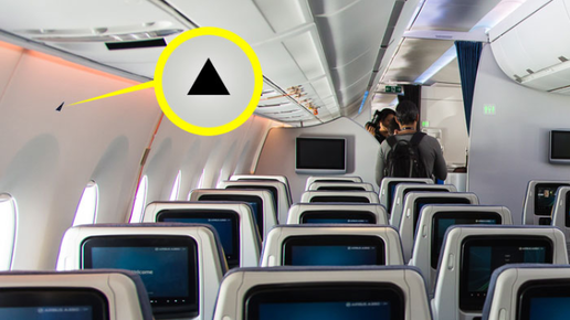 Всем привет, и сегодня мы разберем необычный "знак" в салоне самолета. Знакомый бортпроводник недавно сказал, что про эту вещь пассажиры спрашивают достаточно часто, вот я и вам про это решил рассказать. Если вы пройдете примерно в середину самолета, то над одним из рядов кресел вы сможете заметить интересную наклейку в виде треугольника, а так как в самолете ничего случайного не бывает - значит, это для чего-то нужно. Было высказано огромное количество предположений, дошло даже до версии "это нужно для того, чтобы понять, где проще всего рубить фюзеляж и делать эвакуационный выход"...