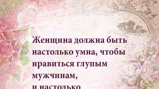 10 цитат про женщин в картинках. Выпуск 1. Я оформила интересные цитаты про женщин. Их можно скачать бесплатно для постов в соц. сетях. Надеюсь, что мудрые мысли известных людей вам понравятся. Цитата "Каждая женщина имеет тот возраст, который заслуживает." Коко Шанель Цитата "Женщина должна быть настолько умна, чтобы нравиться глупым мужчинам, и настолько глупа, чтобы нравиться умным." Сари Габор Цитата "Настоящая женщина должна быть мудрой, чтобы управлять семьёй, мужем, потакая его капризам."...