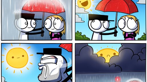 Говорят, что одна из самых распространенных тем для разговора с мало знакомыми людьми - это погода. Оно и не удивительно - подметить текущие погодные условия и обсудить их со случайным собеседником - это самый простой способ завязать разговор. Комиксов про погоду в сети тоже полно - ведь данная тема никогда не перестанет быть актуальной. У меня в блоге, к примеру, уже выходили подборки про погодные условия всех существующих времен года, но а сегодня я решил найти для вас десятку комиксов об одном конкретном погодном явлении - как вы уже могли увидеть в заголовке речь пойдет о дожде...