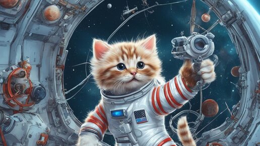 Привет всем! Продолжаем подборку картинок, в этот раз с Котами космонавтами, часть ВОСЕМЬ. 🤫 Космос всегда был местом загадочным и притягательным для человечества. И неудивительно, что даже наши милые пушистые друзья - котики, мечтают отправиться в космос и исследовать его просторы. Представьте себе картину: котик в космическом костюме, с шлемом на голове, парит в невесомости, окруженный звездами и планетами. Это так мило и захватывающе!