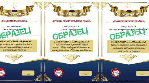 Для поддержания, а может и создания весёлой атмосферы на школьном выпускном, линейке и даже 5 октября в День учителя, подготовлено 25 (двадцать пять!) заготовок с красивым оформлением и фразами о любимых педагогах. Предметники, администрация ─ никто не забыт! Подойдут для начальной и средней школы. Без оскорблений и нецензурных выражений. Могут вручаться как коллегами, так и родителями или, например, выпускниками...