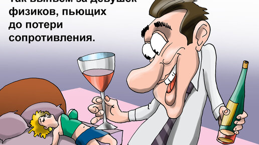Девушки—медики пьют до потери пульса. Девушки—химики до потери реакции. Девушки—математики — до бесконечности. Так выпьем за девушек—физиков, пьющих до потери сопротивления.
