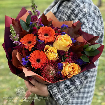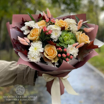Новогодние букеты и композиции сезона 2025/2026 Наши магазины уже вовсю готовятся к Новому году, наши флористы подготовили большой праздничный новогодний ассортимент букетов и композиций, следуя трендам флористики на 2026 год. Мы готовы создавать для вас новогоднее праздничное настроение уже сейчас и весь декабрь - привезли роскошный нобилис, приготовили деревянные ящики и кашпо под сборные ели и композиции, закупили качественный и стильный декор. У зимнего декора много вариантов на любой вкус и бюджет: стильные композиции из веток нобилиса в форме елочки, классические букеты с елью, различные кашпо и корзины, традиционные рождественские венки, офисные корпоративные варианты новогодних композиций, украшение на стол со свечами. Кстати, мы уже давно заметили тенденцию к замене традицонной наряженной по всем канонам большой праздничной елки изящным новогодним еловым букетом. Преимущества покупок в интернет-магазине «Мосцветторгком» Предлагаем купить новогодние букеты и композиции с круглосуточной доставкой по самой выгодной цене. Новогодние букеты стоимостью от 5 000 рублей наши курьеры привозят бесплатно. Также можно заказать доставку букета из нашего каталога непосредственно на адрес того человека, которому вы хотите сделать приятный сюрприз. Это будет отличным предновогодним праздничным подарком! Встречайте Новый 2026 год красиво – радуйте цветами себя и своих близких! Ваш Мосцветторгком