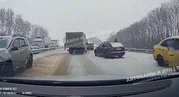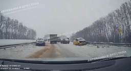 Тульская служба новостей7 февраля в 09:37Столкнулись 13 автомобилей: появилось видео массового ДТП в Тульской области