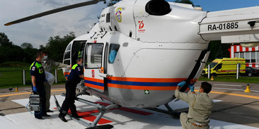 Вертолет санитарной авиации прибыл в город Борзя Забайкальского края, куда были госпитализированы пострадавшие в ДТП с автобусом, в котором перевозили граждан Китая.