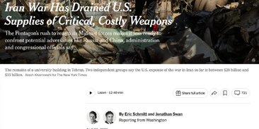 Как сообщает The Wall Street Journal, в США израсходовали столько боеприпасов в Иране, что, по мнению некоторых чиновников администрации, страна всё чаще приходит к выводу, что не сможет в полной мере реализовать планы по защите Тайваня от китайского вторжения, если оно произойдёт в ближайшее время.