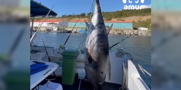 Пойманного на Курилах тунца-гиганта стоимостью 1 млн долларов сняли на видео