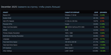 Valve опубликовала статистику Steam Hardware Survey по итогам декабря 2025 года: в игровом сегменте AMD активно подбирается к позициям Intel.