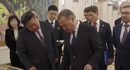 На опубликованных кадрах видно, что российская делегация вручила около десяти документов, датированных 1950-ми годами.Life.ru