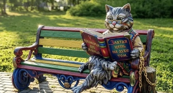 Планируется установить скульптуру кота учёного, который будет сидеть на лавочке рядом с дубом.Tverigrad.ru