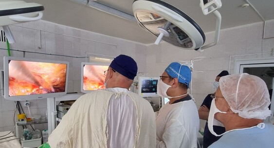 Бригада хирургов торакального, абдоминального отделений и хирурга отделения опухолей головы и шеи Брянского онкодиспансера провели уникальную для региона операцию - видеоассестированную экстирпацию пищевода.RiaStrela