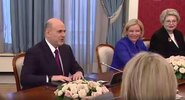 Премьер-министр РФ Михаил Мишустин после заседания кабмина за чаепитием в Доме правительства поздравил всех женщин - сотрудниц кабмина с 8 Марта.ТАСС