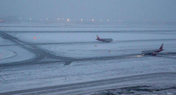 В Пулково показали, как чистят взлётно-посадочные полосы в условиях сильного снегопада