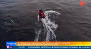 В Териберке возобновилась операция по спасению горбатого кита, который запутался в сетях.РЕН ТВ