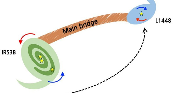 Астрономы подтвердили существование приливного газового моста между двумя протозвездными системами L1448 IRS3A и L1448 IRS3B, включающими в себя, как минимум, четыре протозвезды.N + 1