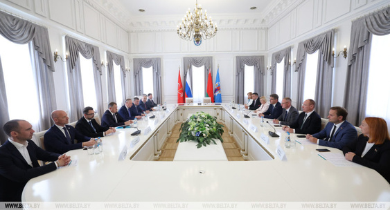 Участие в деловых переговорах приняли губернатор Александр Беглов, мэр Минска Владимир Кухарев, делегация из Петербурга.Телеканал Санкт-Петербург