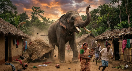 40-летний слон по кличке Бхыра уже несколько дней беспокоил местных жителей своим поведением.РИАМО