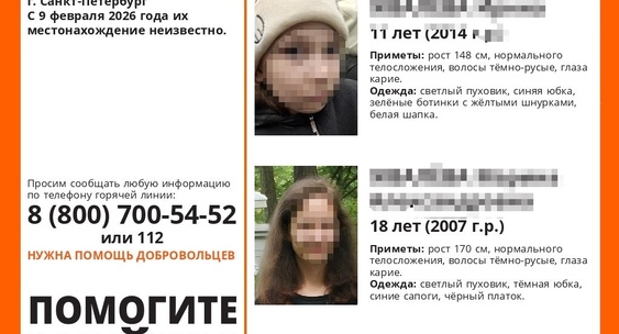 Пропавших девочек 18 и 11 лет из Петербурга ищут в нескольких российских регионах, кроме города на Неве и Ленобласти. До этого в Сети распространилась информация о вступлении сестер в религиозную секту.