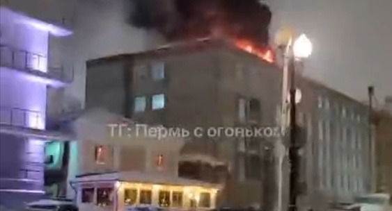 Ночью в строящейся гостинице в Перми загорелась кровля