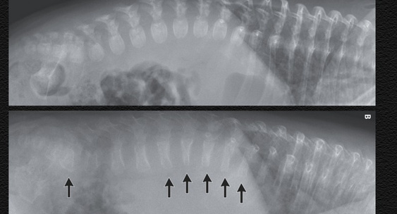 На повторной рентгенограмме позвоночника также обнаружили выраженное снижение костной массы и компрессионные переломы позвонков.Главный региональный