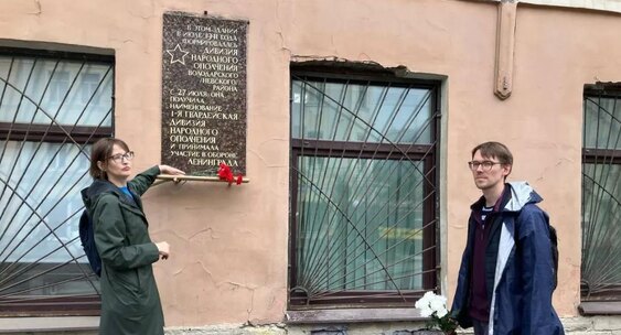 Активисты установили новую мемориальную доску на здание школы Ольги Берггольц