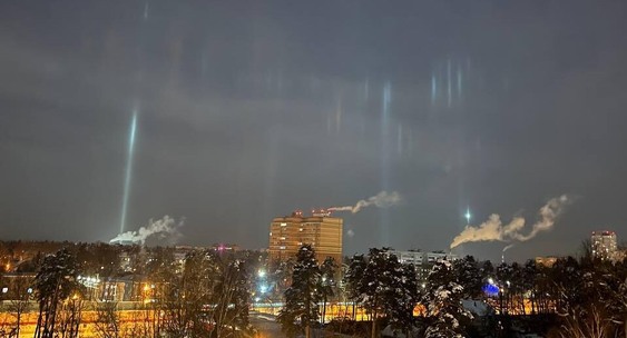 Фотографии редкого атмосферного явления, напоминающего вертикальные прожекторы голубого цвета, опубликовали в местных пабликах и Telegram-канале "КудаМосква".Царьград