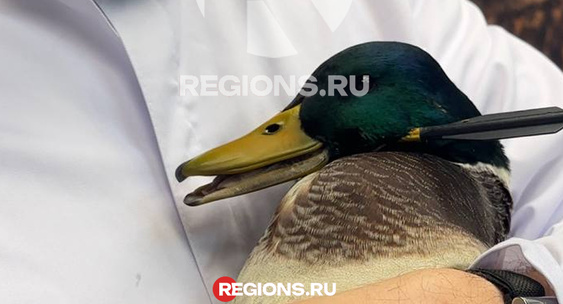 Селезня со стрелой в голове и крючком в горле спасли ветеринары в Балашихе