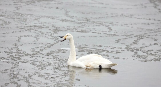 Жители Тадибе-Яхи следят за лебедем на замерзающем озере