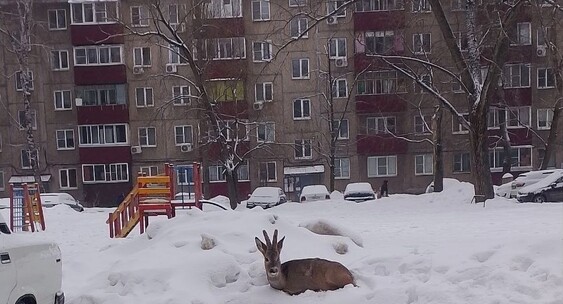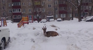 Устав от непривычной обстановки, косуля просто улеглась отдыхать прямо в сугробы на парковке у дома №115 по улице Гагарина.Новости Липецка