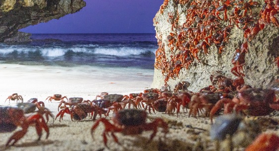 Красные крабы начили миграцию в джунгли, заполонив остров Рождества
