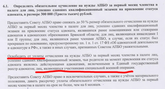 Конференция приняла решение переименовать «вступительный взнос», который должны платить новые адвокаты, в «обязательное отчисление на общие нужды АПБО за первый месяц членства в палате».Брянские новости