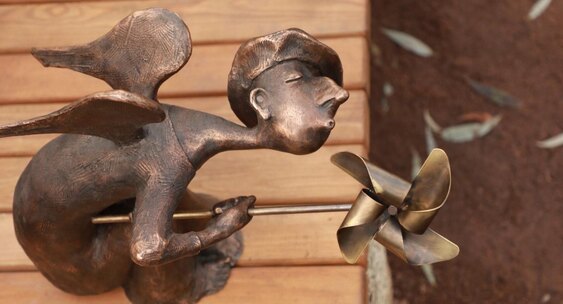 Новая скульптура представляет собой маленького ангела, играющего с вертушкой-ветряком.DP.RU