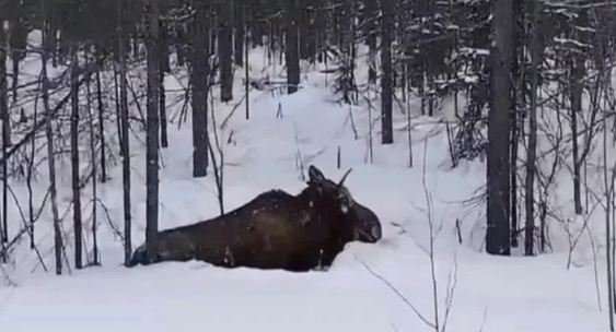На видео, опубликованных в местных пабликах, видно, как лось ходить вдоль трассы вместе с людьми и пытается зайти в один из подъездов.Life.ru