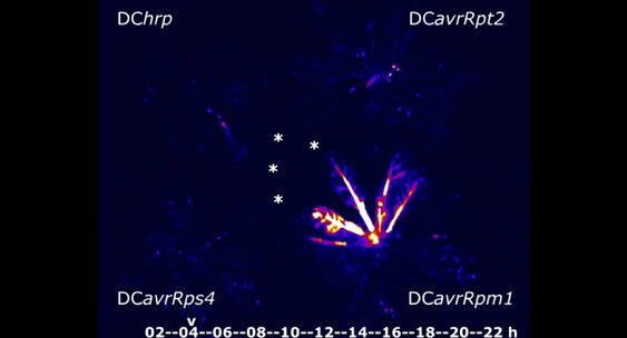 Светящийся биосенсор, связанный с геном JISS1, показал, что сигнал тревоги покидает зараженную зону уже через 30 минут, распространяясь по внутренним каналам клеток (эндоплазматическому ретикулуму).Naked Science