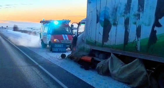 Спасатели отогрели водителя большегруза в служебном автомобиле и транспортировали машину до ближайшей станции технического обслуживания.Тюменская линия