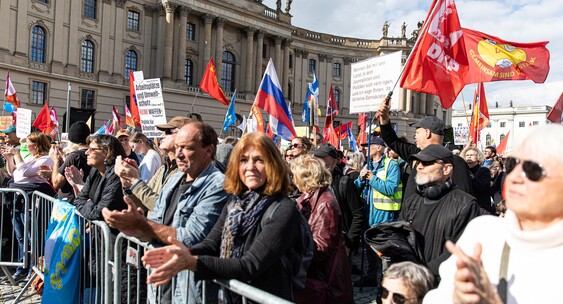 Массовая демонстрация против поставок вооружений Украине и Израилю состоялась в Берлине в День германского единства.Взгляд.ру