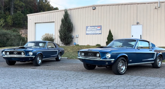 Оба Мустанг окрашены в насыщенный синий цвет и оснащены классическим мотором Cobra Jet, который в свое время стал символом динамичности и скорости.110KM