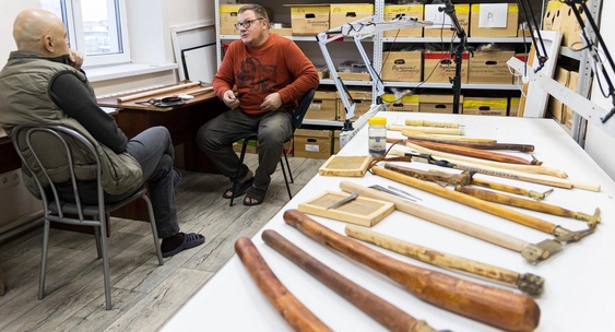 Помимо неолитической дрели, в арсенале Петренко множество реплик древнего оружия.Monavista Daily