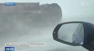 Мужчина на автомобиле старался «прикрыть» грузовую машину от ветра, однако не вышло — сильным порывом «Газель» опрокинуло на дорожное полотно.Телеканал Краснодар