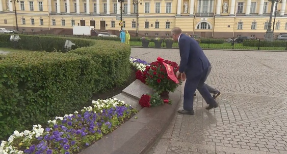 Глава города также возложил цветы к Медному всаднику на Сенатской площади.78.ru