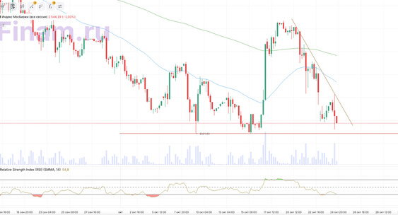 Индекс Мосбиржи падает на 1% до 2545,04 пункта, долларовый индекс РТС снижается на 0,63% до 990,2 п. Банк России понизил официальный курс доллара на 25 октября до 80,9713 рубля с 81,2690 рубля днем ранее.Finam.Ru