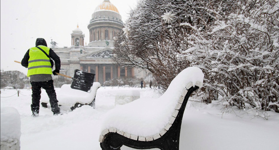 В Санкт-Петербурге объявлен "желтый" уровень погодной опасности из-за сильного снегопада и гололеда.Online47.ru