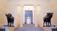 Справа от входа находится «Зубр мычащий» работы Гуго Залемана, а слева - «Зубр шагающий» Роберта Баха, - рассказали в пресс-службе.КП - Санкт-Петербург