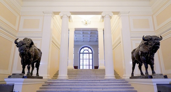 В Петербурге обновили гипсовые статуи зубров в доме Пашкова