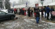 Люди вынуждены проводить долгие часы на холоде, стоя в очереди без навеса и нормального порядка организации движения.РЕН ТВ