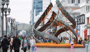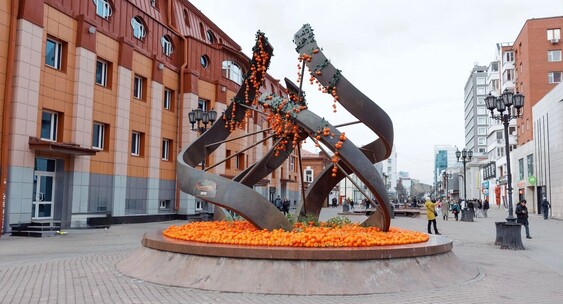В Екатеринбурге фонтан «Спираль времени» на улице Вайнера украсили хурмой. Необычный арт-объект появился накануне выхода музыкальной комедии «Королек моей любви». Фильм, атмосфера которого вдохновлена Болливудом, выйдет 1 апреля.